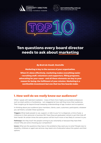 (This question and answer is taken from Brett's free help sheet Ten questions every board director needs to ask about marketing).